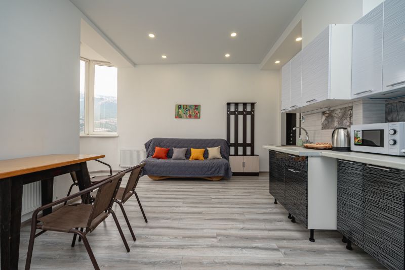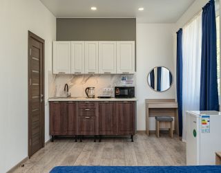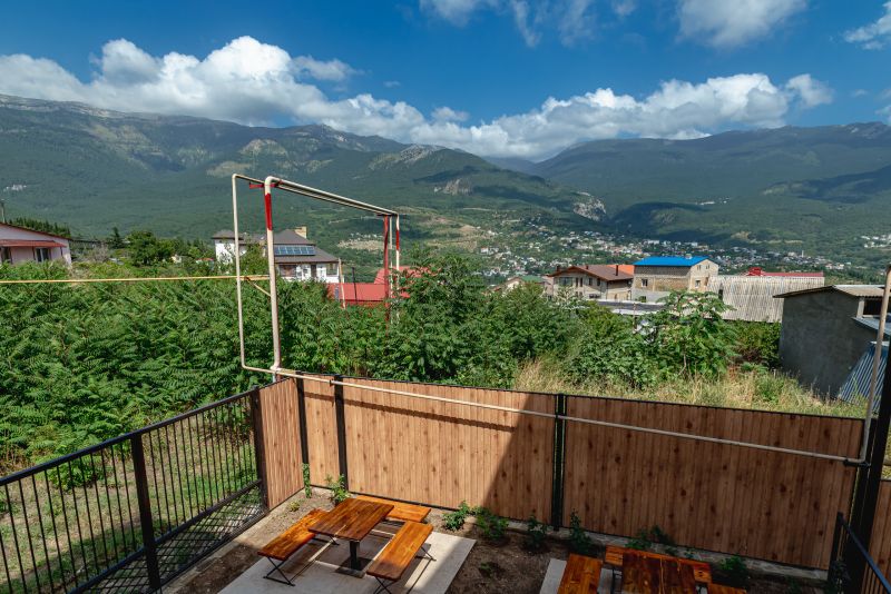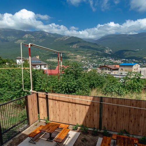 Апартаменты находятся гораздо выше над уровнем море в тихом уютном месте с мангальной зоной и беседкой, в дали от городского шума и суеты. Здесь гости могут получить тот отдых, о котором мечтали целый год. Те самые незабываемые краски жизни за которыми и едут в Крым. Утренний кофе с видом на море и горы. Вечерний бокал вина в теплой компании на свежем воздухе.